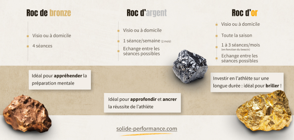 Au début de chaque séance nous faisons un point par rapport à la séance précédente et ce qui s’est passé entre les deux séances (entraînements, compétitions, évènement personnel etc). Lors de la séance nous échangeons beaucoup afin de cibler et lever les freins. J’utilise aussi différents outils qui te guideront et avec lesquels tu repartiras.